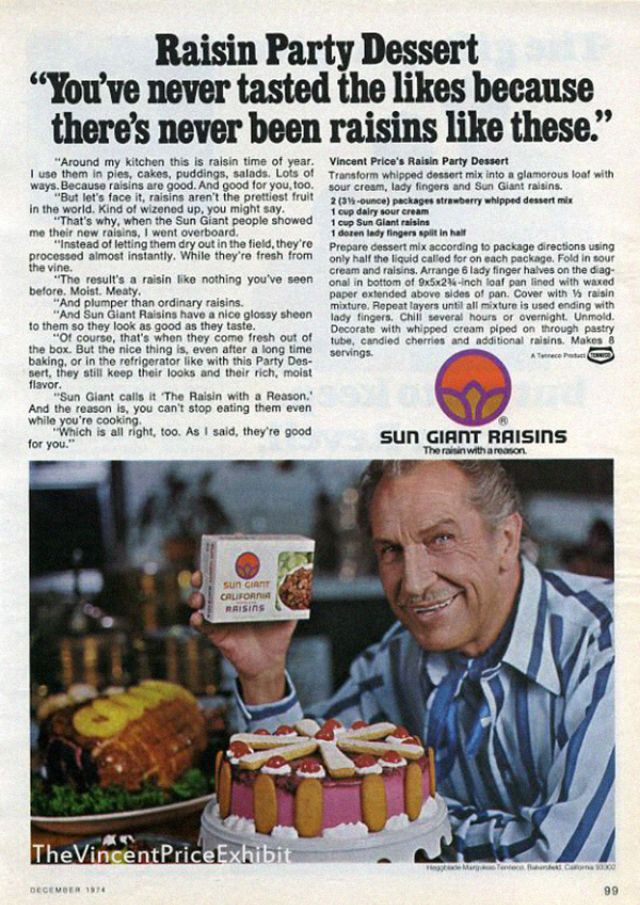 Vincent Price for Sun Giant Raisins.