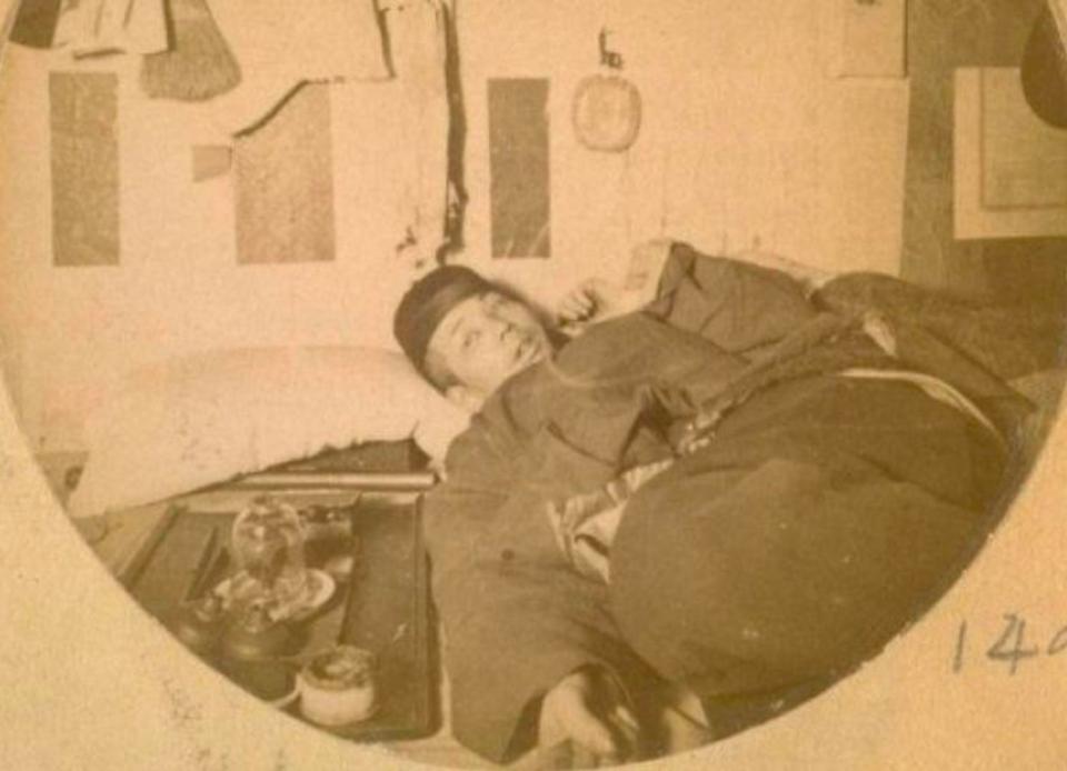 Opium smoking was brought to America by the rush of migrants during the California Gold Rush. These two men were pictured in San Francisco in 1898.