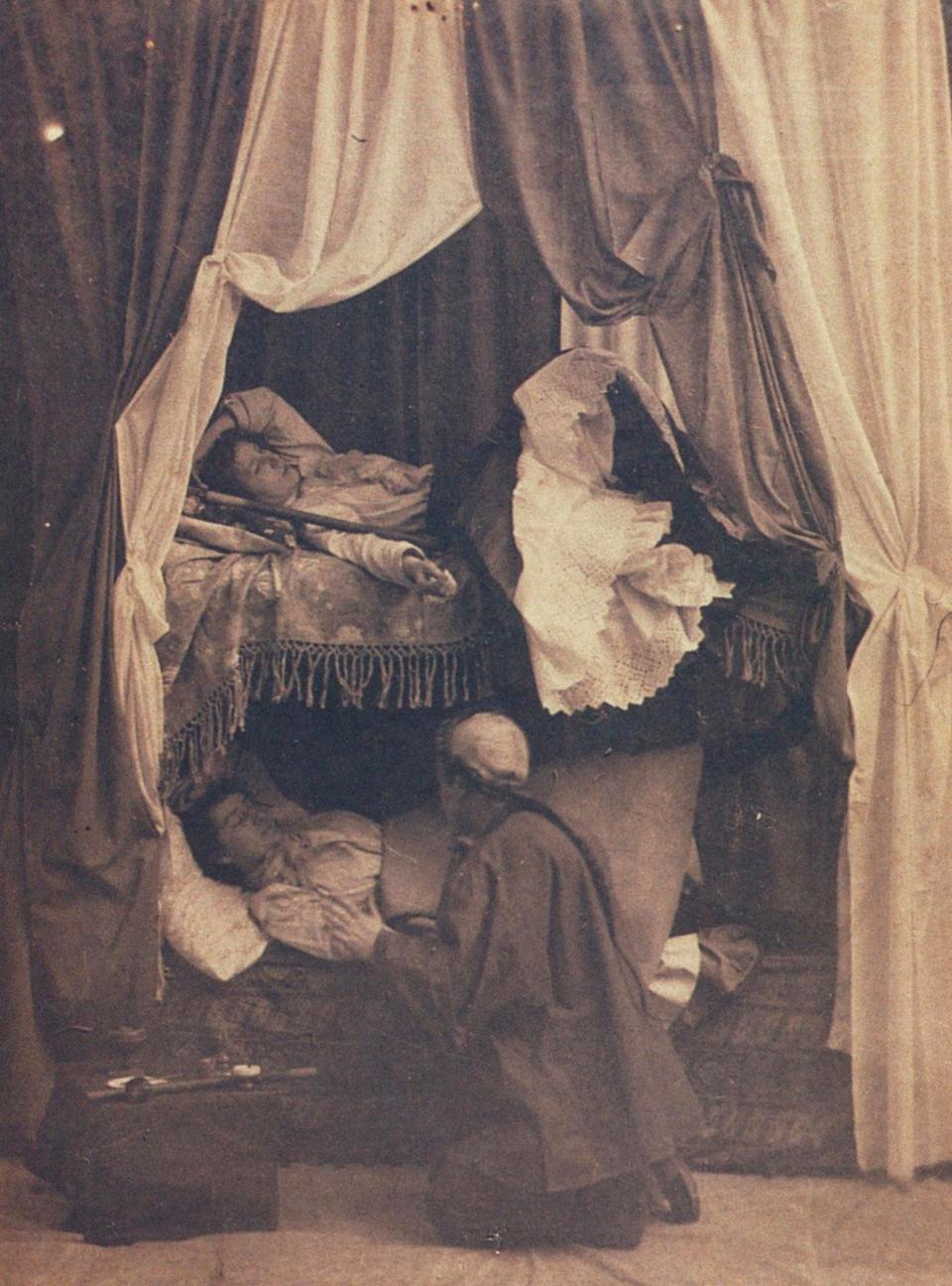 Two women are tended to as they lie in beds in one of the more upmarket dens in New York in around 1899.