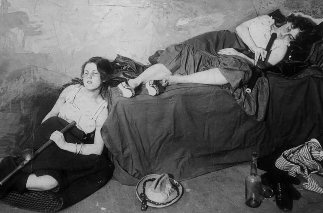 The acrid smoke hung thick in dimly lit basements across America’s cities, where customers from society’s highest and lowest rungs sought refuge in clouds of vaporized opium.