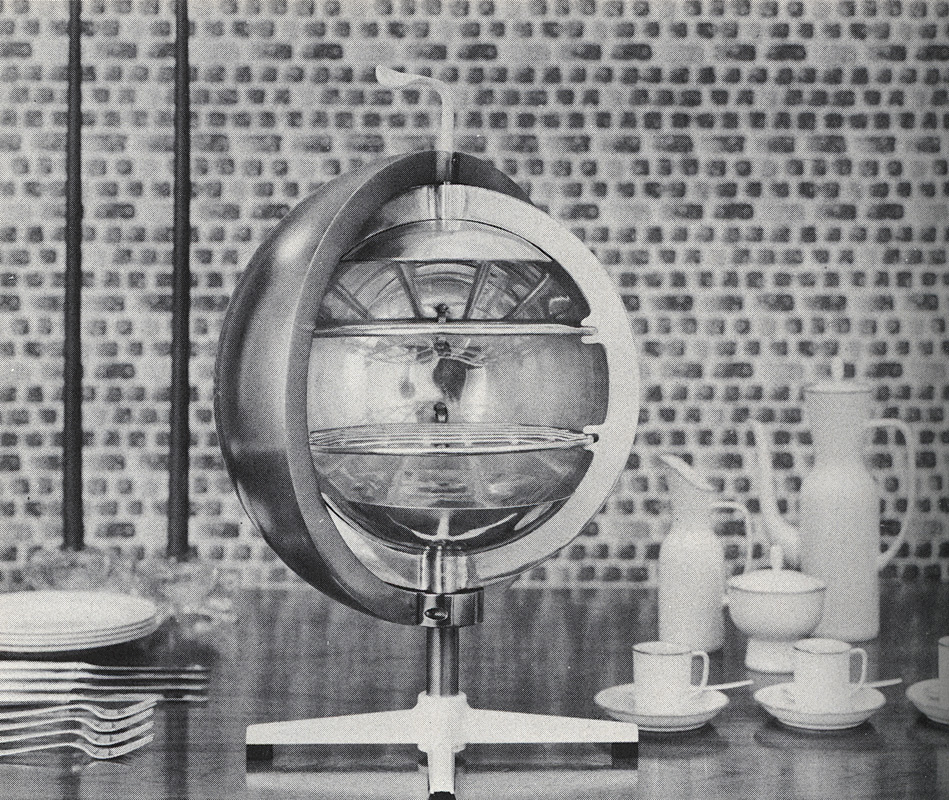 Designed by Greta Magnusson Grossman, this portable, spherical oven is made for broiling and baking at the table, in the kitchen, or outdoors.