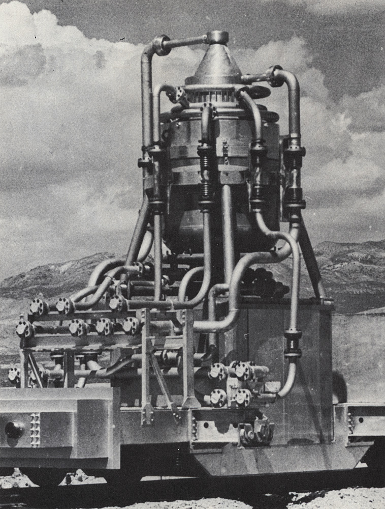 The “Kiwi” reactor, shown here in an experimental phase, is among the early designs leading to atomic units capable of powering rockets on journeys stretching millions of miles through space.