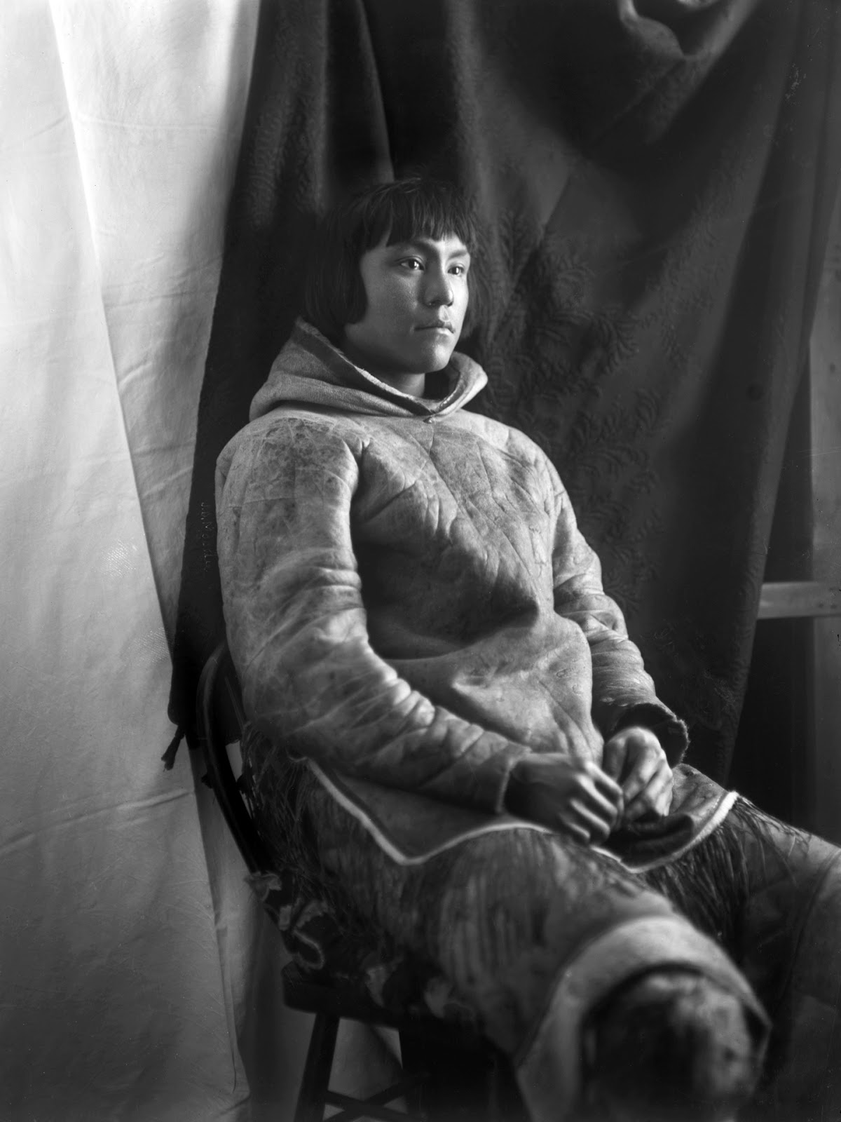 The two proved to be an extraordinarily complementary pair. While Douglas, trained in photography by his wife, turned his lens toward the landscape and the work of the Mounted Police, Geraldine set up a studio inside the detachment house and began photographing the local Inuit community with a rare and respectful intimacy
