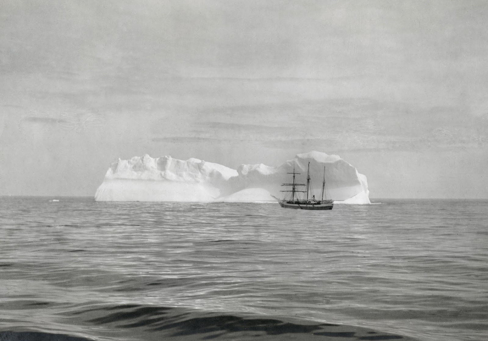 Dominion Government steamer Arctic in front of an iceberg, at the mouth of Hudson Strait, Nunavut, c.1904.