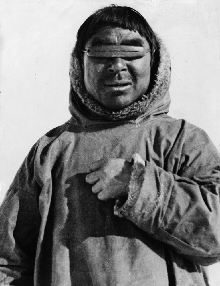 Inuit (Eskimo) with snow goggles, 20th century. Yellowknife, Prince Of Wales Northern Heritage Centre.