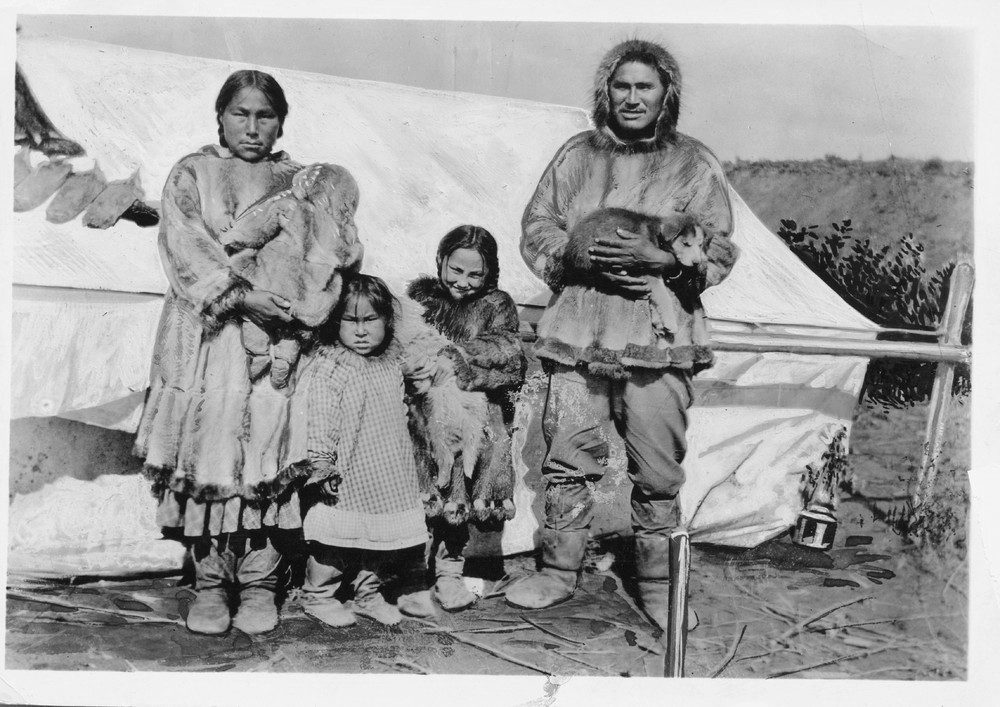 An Eskimo family living near the Mackenzie River, Canada.