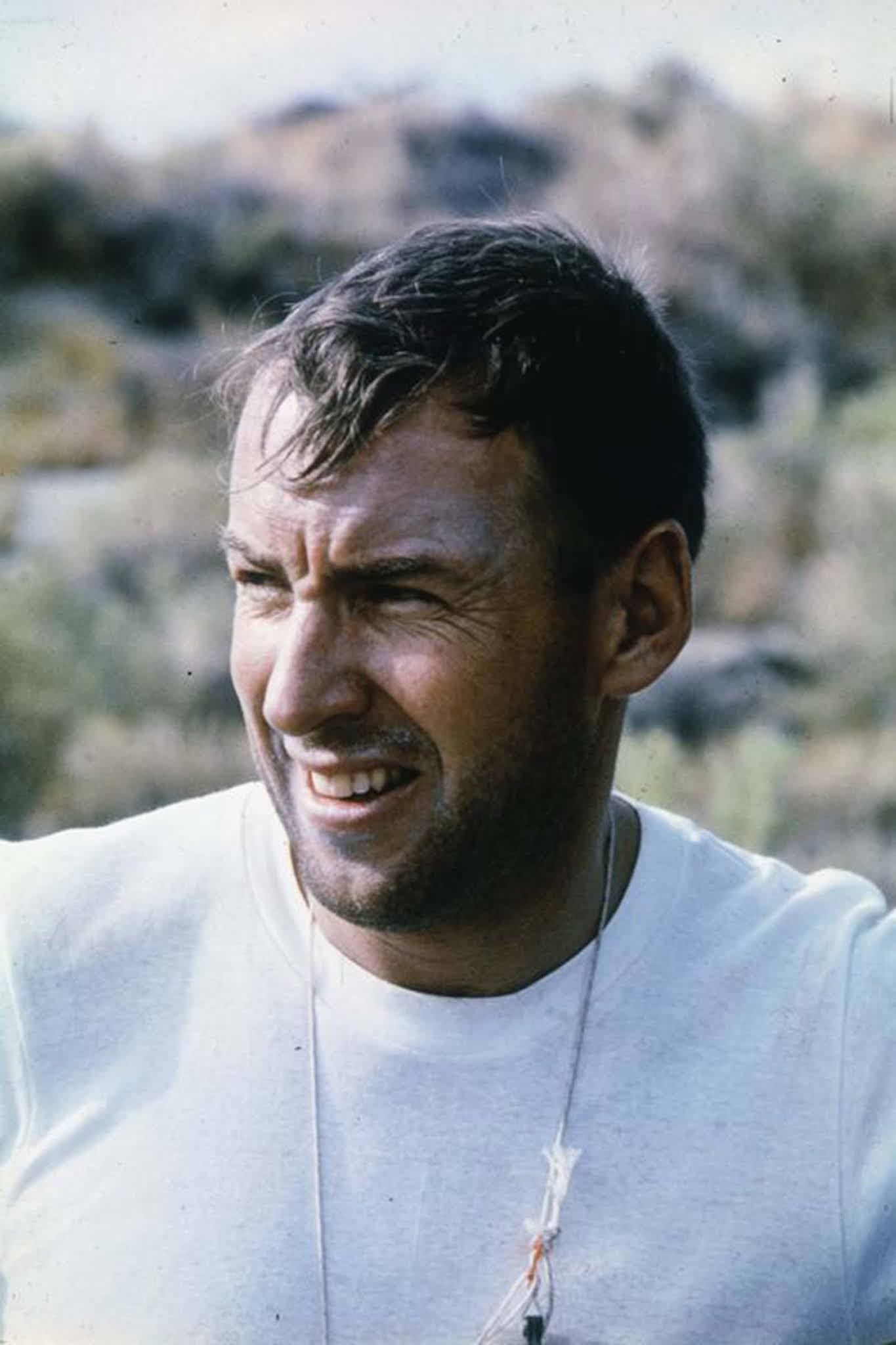 Astronauts pose during desert training at Stead Air Force Base in Nevada. Front row: Frank Borman; James A. Lovell; John W. Young; Charles Conrad; James A. McDivitt and Edward H. White. Back row: Ray Zedehar (Astronaut Training Officer); Thomas P. Stafford; Donald K. Slayton; Neil A. Armstrong and Elliot M. See. 1964.