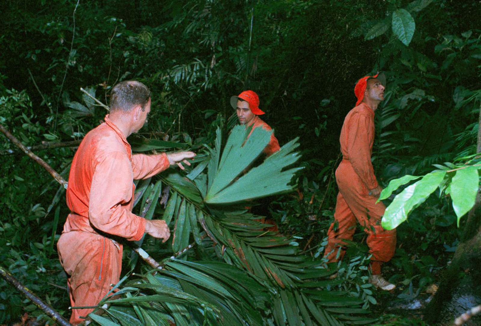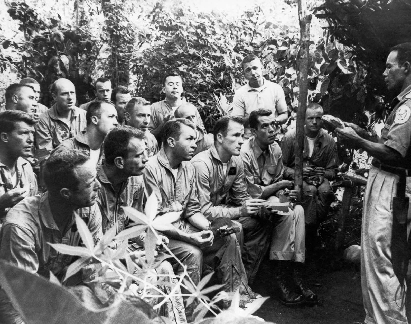 Mercury astronauts learn jungle survival techniques in Panama. 1963.