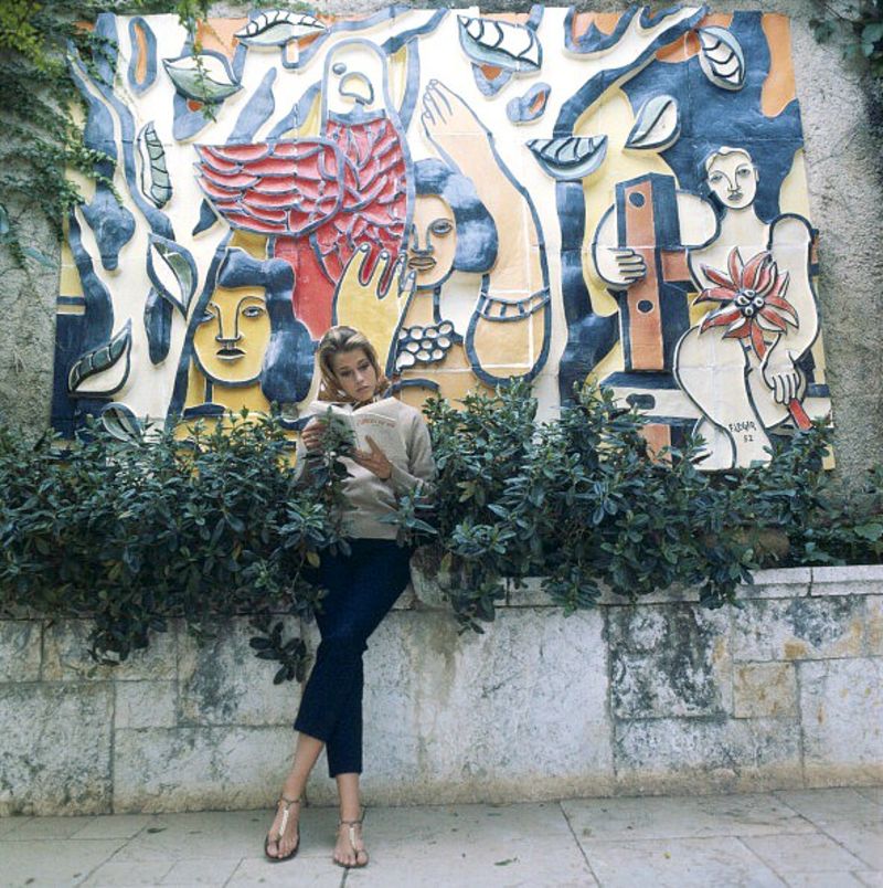 Jane Fonda taking notes during a break in filming at Auberge de la Colombe d’Or in Saint-Paul-de-Vence, photo by Francois Pages, 1963.