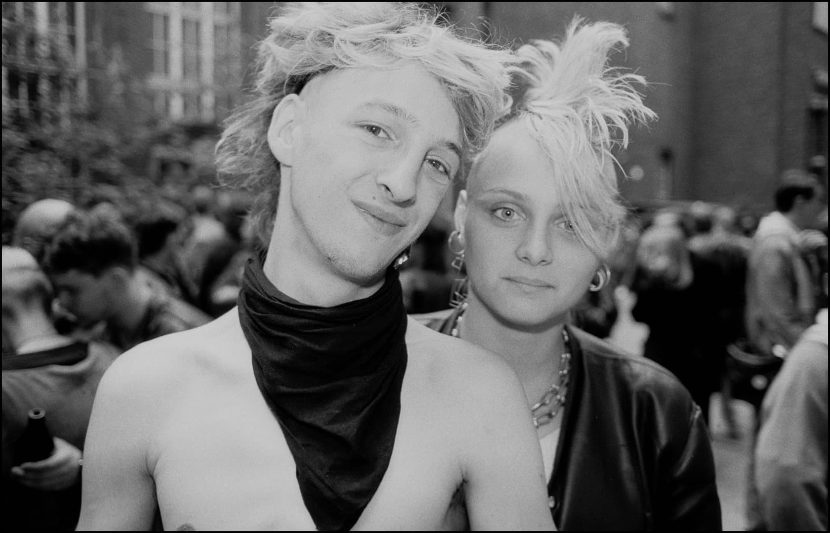 Early punks, Kastanienallee, Berlin, 1982. (Photo by Harald Hauswald).