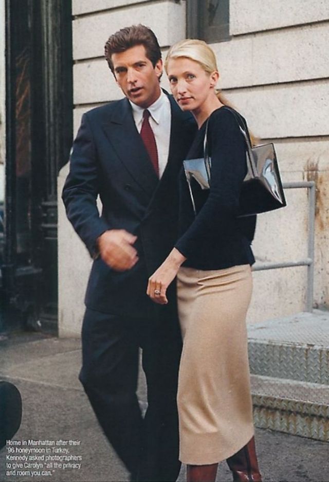 (Photo credit: Vintag.es via vintag.es/2019/05/jfk-jr-carolyn-bessette-style / Pinterest).