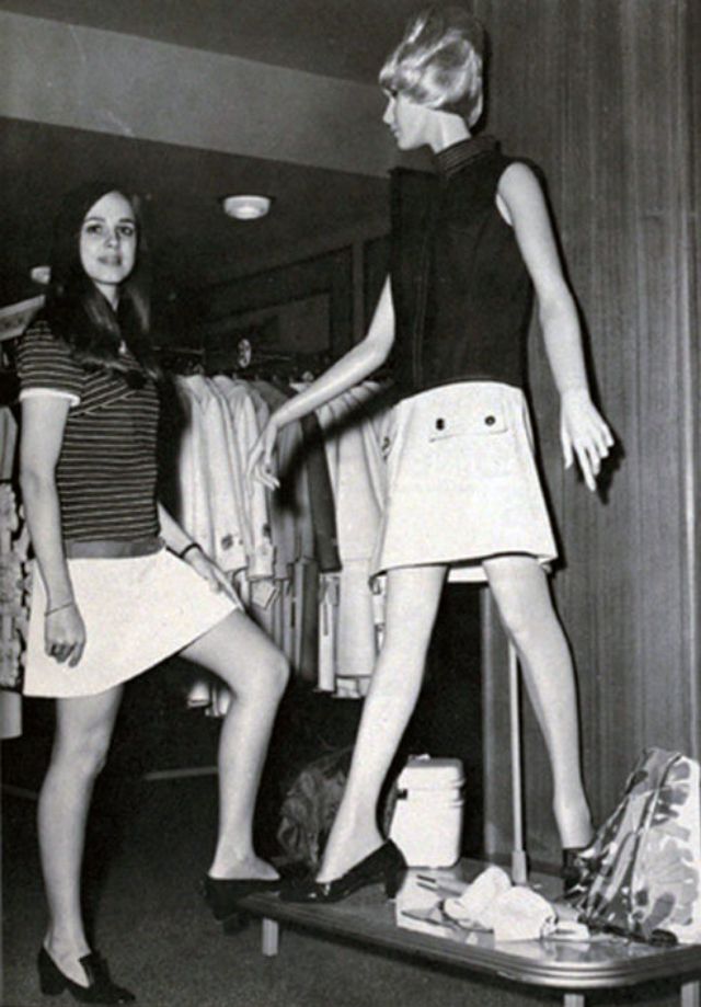 The bikini came into fashion in 1963. In the middle of the decade, people were dressing in psychedelic prints, highlighter colors, and mismatched patterns. Mini skirts and go-go boots were made popular.