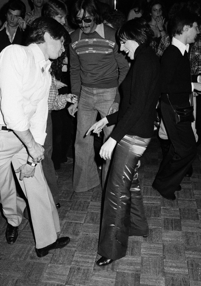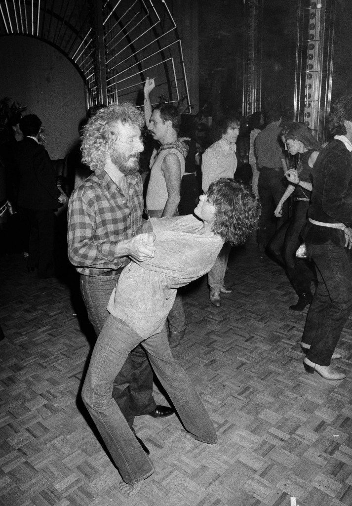 A couple dances back to back on the dance floor of New York’s Studio 54, 1977.