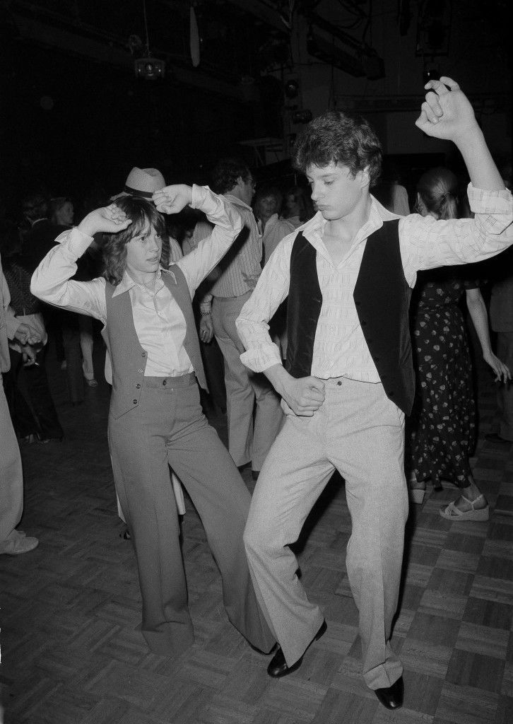 Dancer Rudolf Nureyev initiates nine-year-old Ricky Schroder into the delights of disco dancing at Studio 54 in New York on Sunday, April 2, 1979. Ricky had previously attended the preview of the remake of “The Champ” in which he stars with Jon Voight.