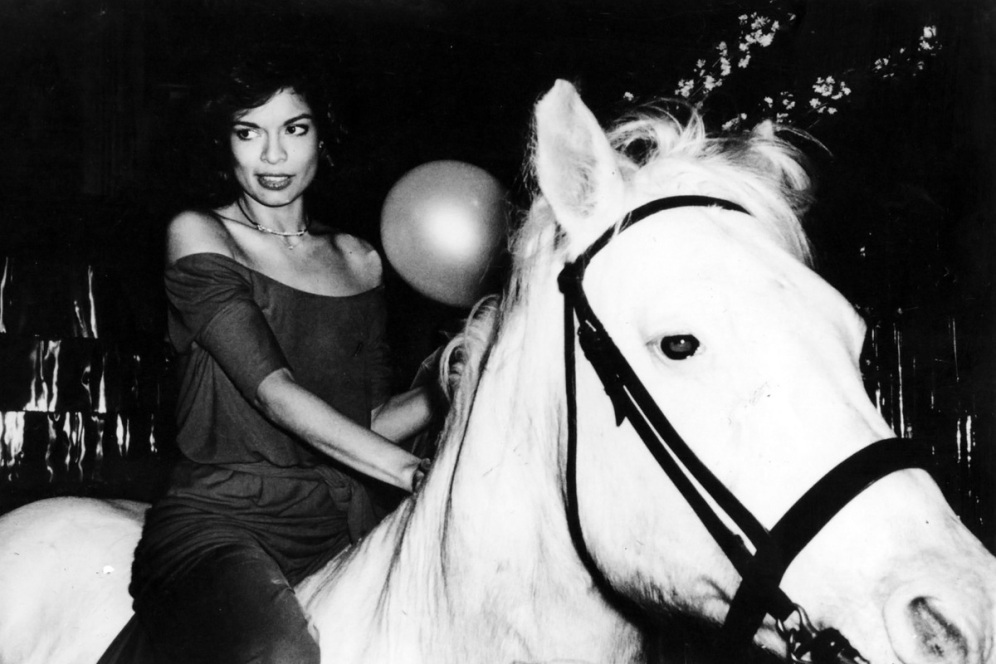 Bianca Jagger at Studio 54 at her birthday party, 1977.