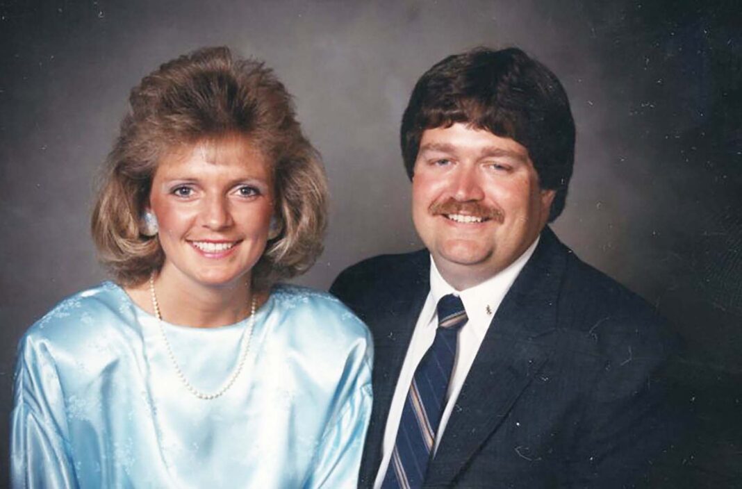 Studio portrait photography was a serious affair in the 1980s. Couples did not simply show up and smile. They coordinated outfits, styled their hair with intention, and sat before professional backdrops that ranged from stormy gradients to sun-washed neutrals.