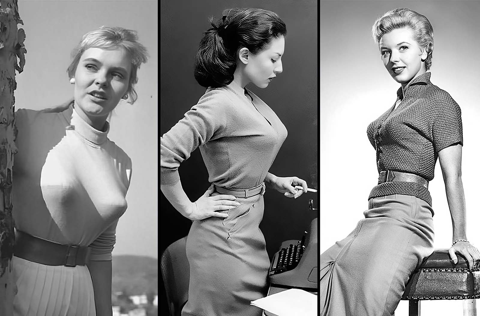 Fashion reflected this shift by reemphasizing traditional femininity. The preferred body shape was the classic hourglass, featuring a narrow waist and a prominently defined bust.