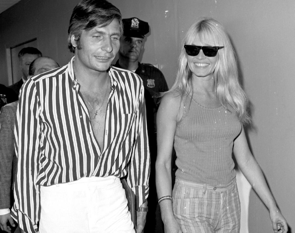 Trendsetter and jetsetter Brigitte Bardot arrives at Kennedy Airport in New York City on July 31, 1966. The couple wore nearly matching stripes. Gene Kappock/New York Daily News
