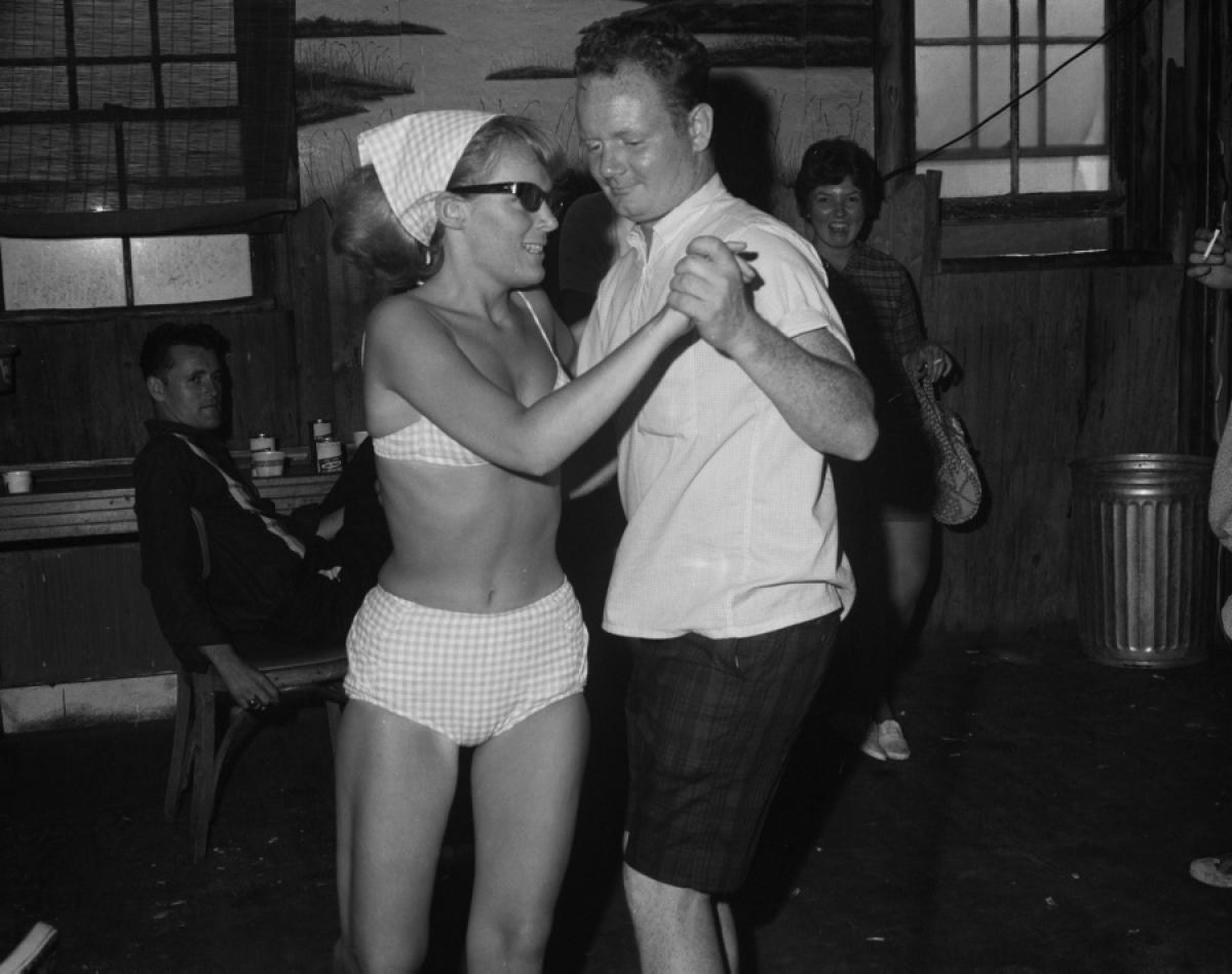 A young couple rings in summer, dancing the night away in the Hamptons in August 1964. The woman wears matching patterns from head to toe. Dan Farrell/New York Daily News