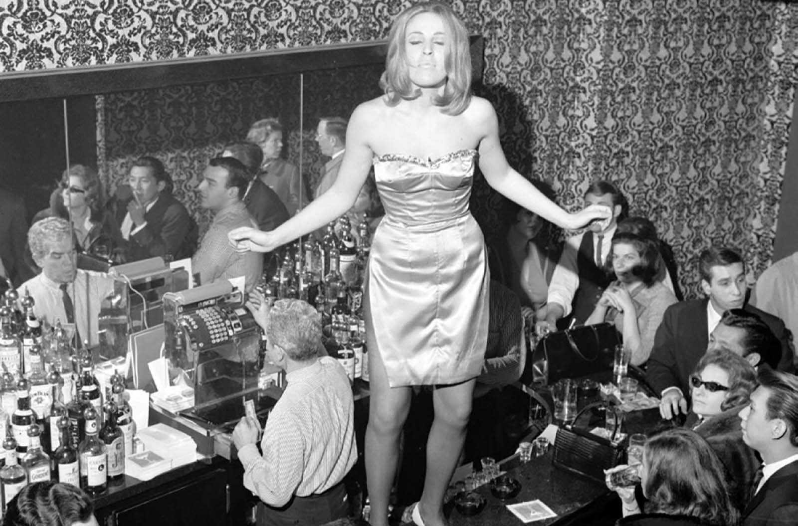 A bar-top performance by waitress Gloria Allen aims at relaxing the inhibitions of patrons a Disc-Au-Go-Go in 1965. New York Daily News